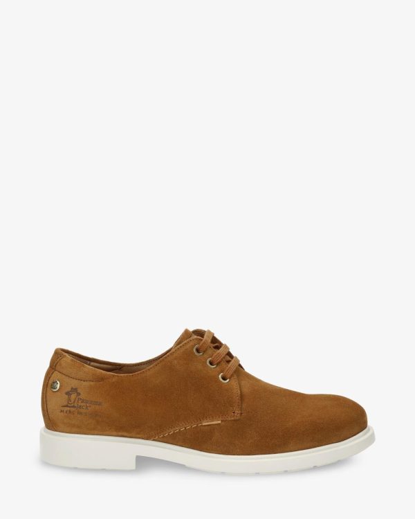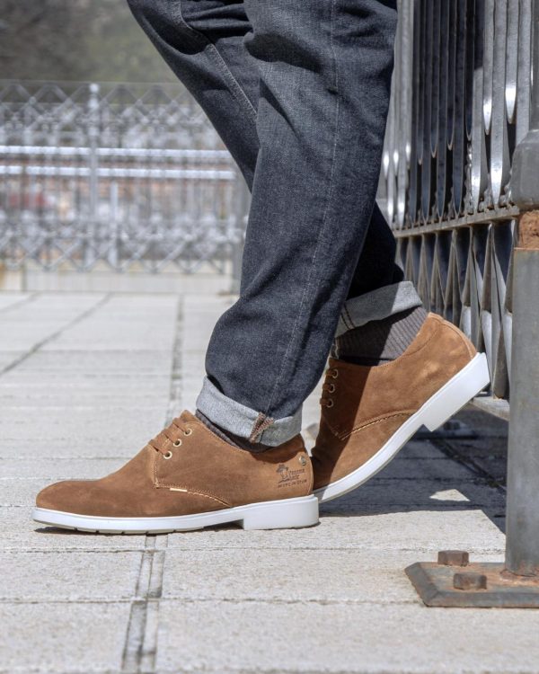 Flat men’s Shoe. Natural suede. Lace-up Closure. Leather lining. Removable anatomical insole. Lightweight, flexible and strong EVA rubber sole. Heel height: 4.7 cm. 100% Made in Spain.|