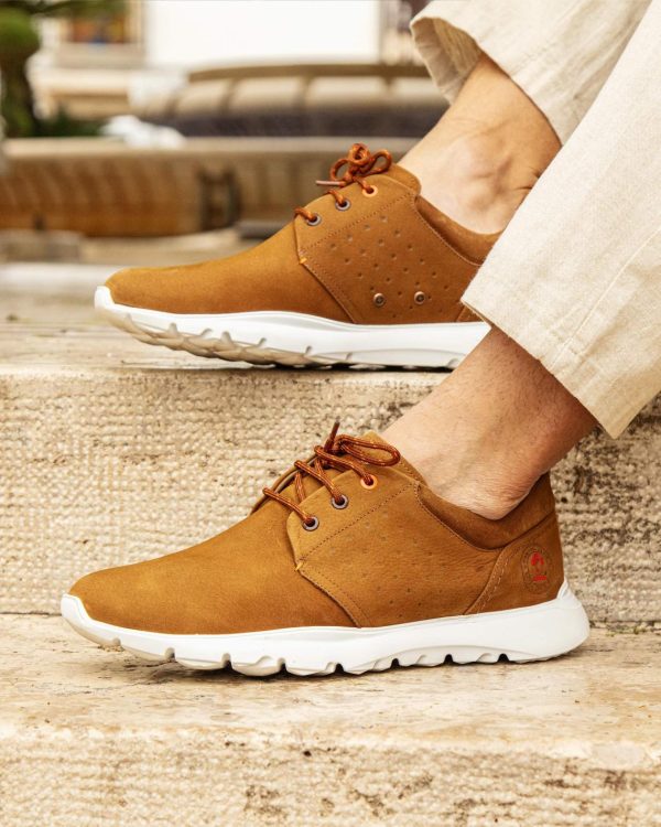 Men’s sneakers. WATERPROOF Tan Nobuck Leather. Lace-up Closure. Leather lining. Removable anatomical insole. Lightweight, flexible and strong EVA rubber sole. Heel height: 5 cm. 100% Made in Spain.|